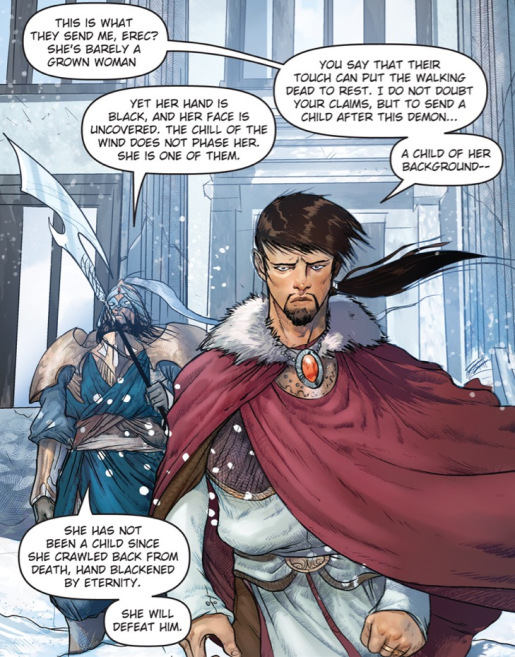I have to say, after looking at the art on this book, I became a little obsessed with Fares Maese’s work. He draws the hell out of the first 2 issues. The detail is insane, and the secondary aspects of the panels, such as a servant offering refreshments, are just as interesting to look at as the main components, like Addair destroying the undead with a single touch.