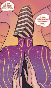 Peter is an artist plagued by anxiety. He, like the rest of humanity, has an implant that gives him direct access to an Internet called “the Service”. Everything online is available to him merely by thinking about it, from the profiles of people he’s just met to programs that will reduce his anxiety. Patrick Whiteside is the creator of the Service, who is hosting a party that everyone wants an invite to. Tom invites Peter and Jim, along with Anne Northrup, a woman Peter’s just met. The party turns out to be…well…the Rapture in a sense, with Whiteside bringing about the next evolution of the service, and in turn the next evolution of mankind, with the introduction of his invention, the “Vera Durga”, a creature that “solves” humanity’s problems in a moment. Thus begins the last evolution of man, and millions of years pass between the 3rd and 4th issues.